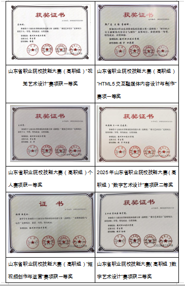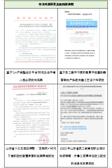 数字媒体技术专业建设以来,教学团队科研与教学成果丰硕,主持或参与省市级课题53项,主编教材11部,发表学术论文80余篇;获授权发明专利21项、实用新型专利26项,完成技术转让1项,登记软件著作权7项。专业建设成效显著,建成省级专业教学资源库1个,立项专创融合课程2门,获批山东省职业教育技艺技能传承创新平台1个。教师队伍坚实有力,专业教师在山东省青年教师讲课比赛、山东省职业院校教学能力大赛等高规格赛事中屡获佳绩。