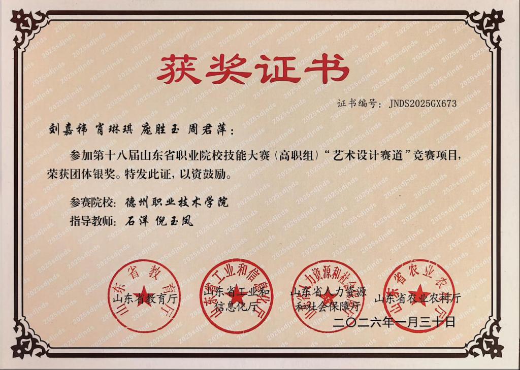 在山东省职业院校教师教学能力大赛中,环境艺术设计专业教学团队凭借扎实的教学设计、精湛的课堂组织与突出的课程思政融合能力,核心课程《居住空间设计》《室内设计实务》连续两年荣获山东省职业院校教学能力大赛二等奖。这些成绩标志着专业在“三教改革”中迈出了坚实步伐,教师团队的模块化教学、项目化实训能力获得省级专家高度认可。